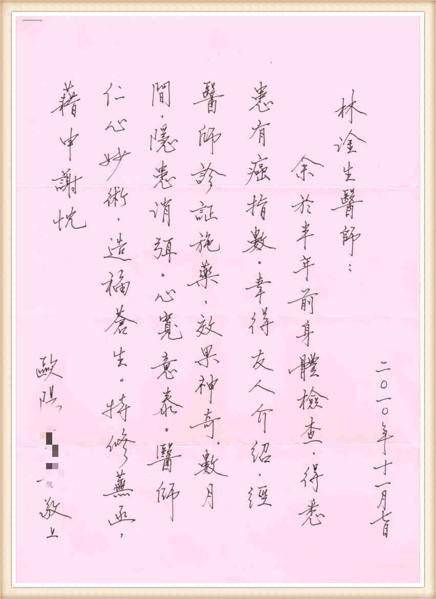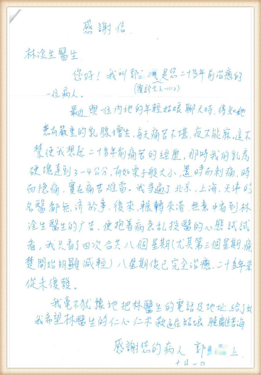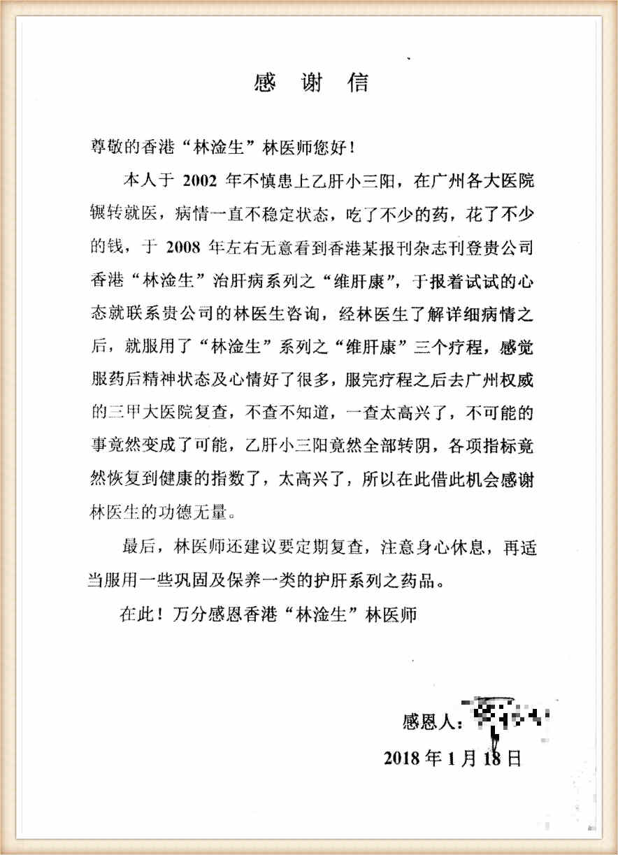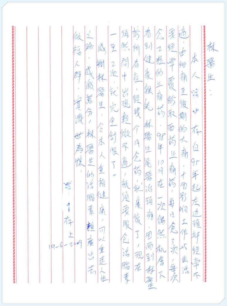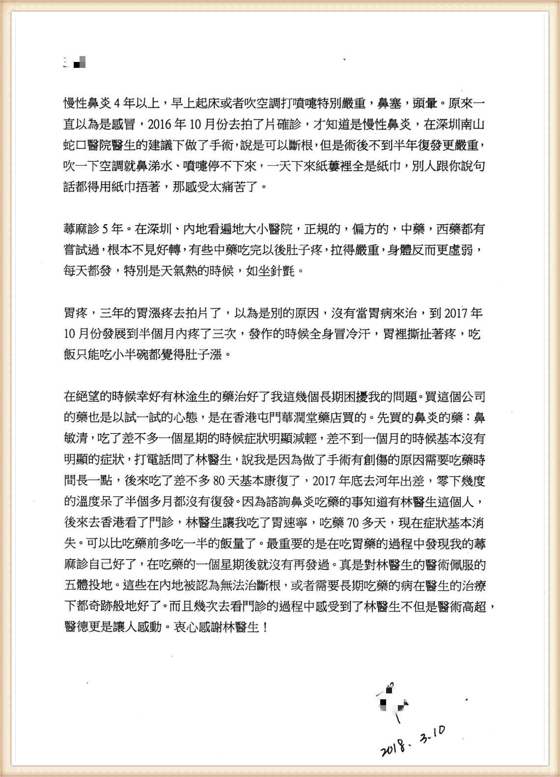 林淦生醫師行醫數十載,治愈無數來自世界各地的病人,當他們康復痊愈之時,無不歡欣鼓舞,且看當中的部分感謝信: