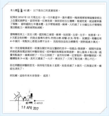 3年前服<林淦生®頸速康®>30天,頭部已極少不適,精神顯著好轉,雙手擡高自如,共服本品80天,至今良好。