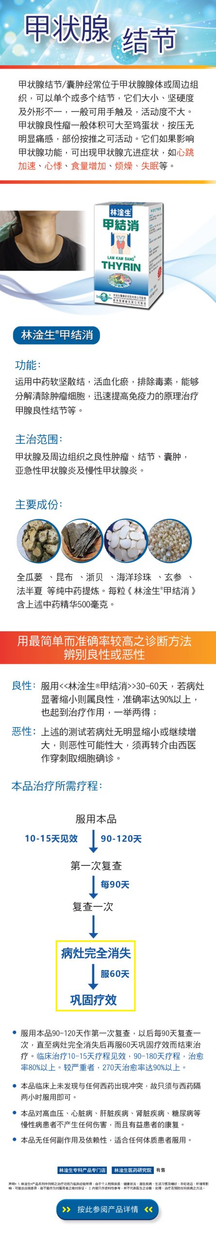 林淦生® 甲结消, 中药医治:甲状腺及甲状腺周边组织出现良性瘤、结节、囊肿,急性甲状腺炎、慢性甲状腺炎