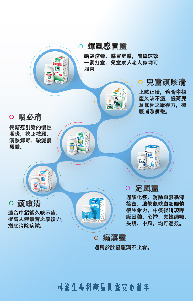林淦生推出6款純中醫藥專科產品應對,幫助客人戰勝病毒,恢復健康,面對長新冠,定風靈歷經臨床,證實療效確切且無副作用。