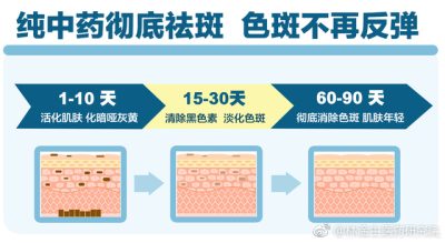 15-30天:調整身體狀況,暢順全身的血液循環,逐步清除體內的黑色素及有害物質,淡化臉上的色斑及黑色素。
