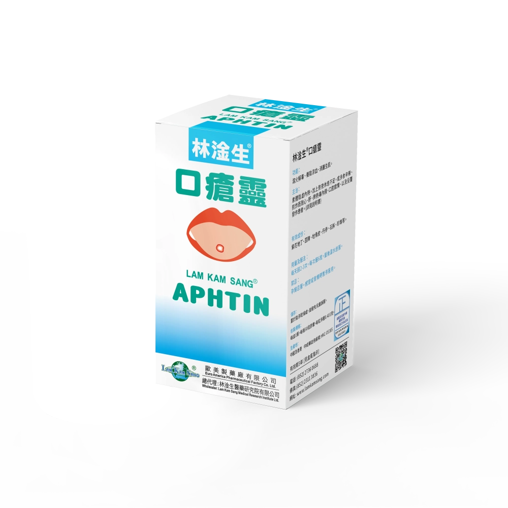 《林淦生®口瘡靈》針對口瘡、鵝口瘡、丫口瘡,特別是反復性及頑固性的患者迅速康復而不再復發。它能迅速提高人體對口腔炎症的抵抗力及自然康復力。本品無任何副作用,適合任何體質服用。