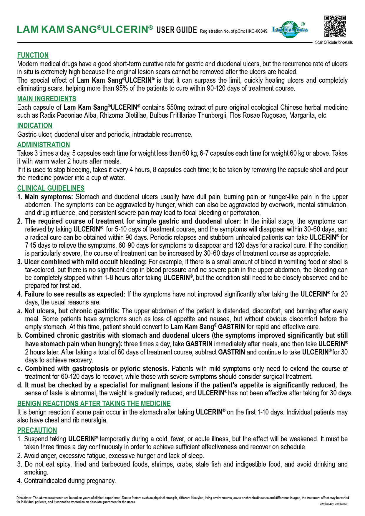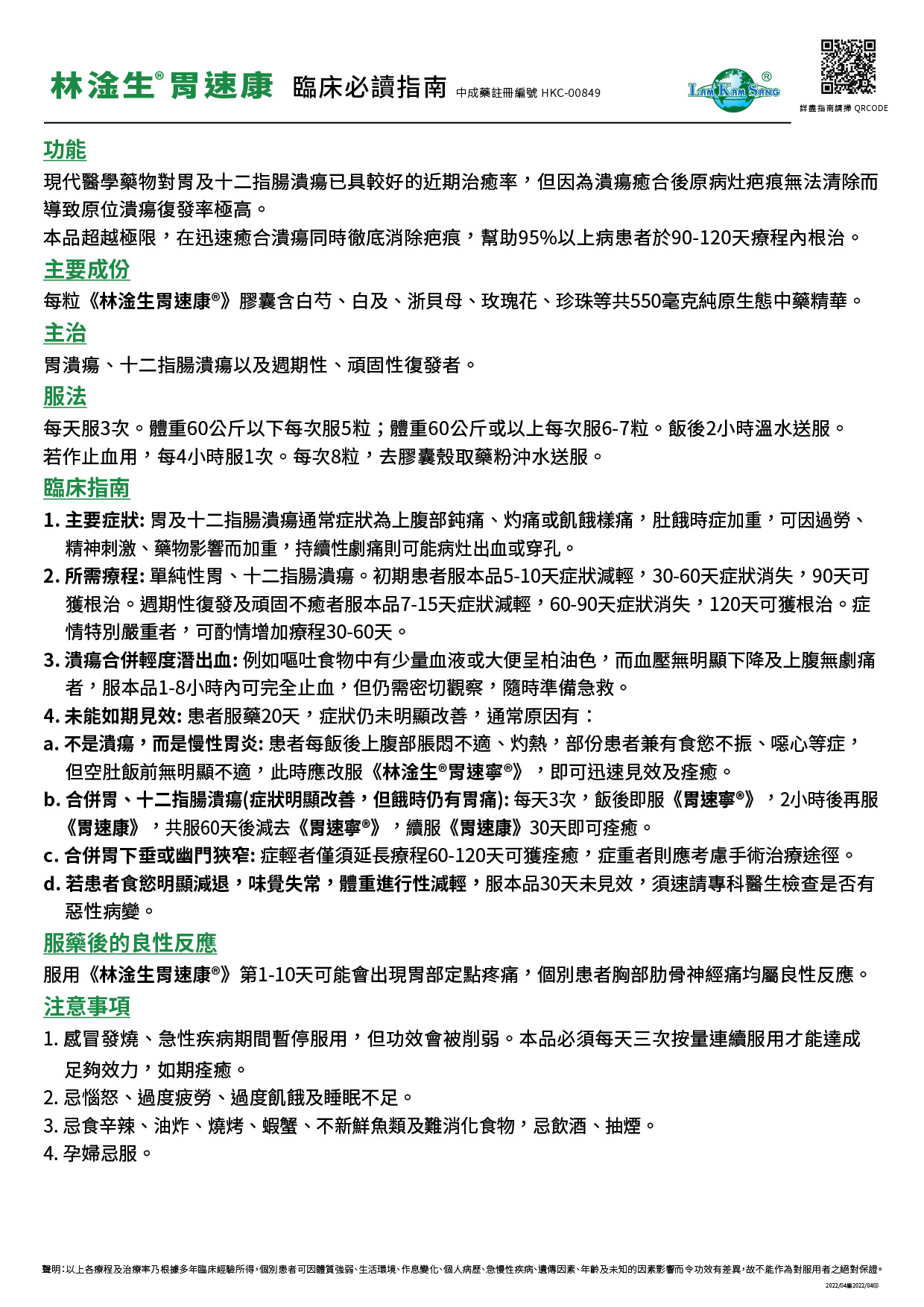 林淦生®胃速康臨床指南 中成藥註冊編號 HKC-00849
