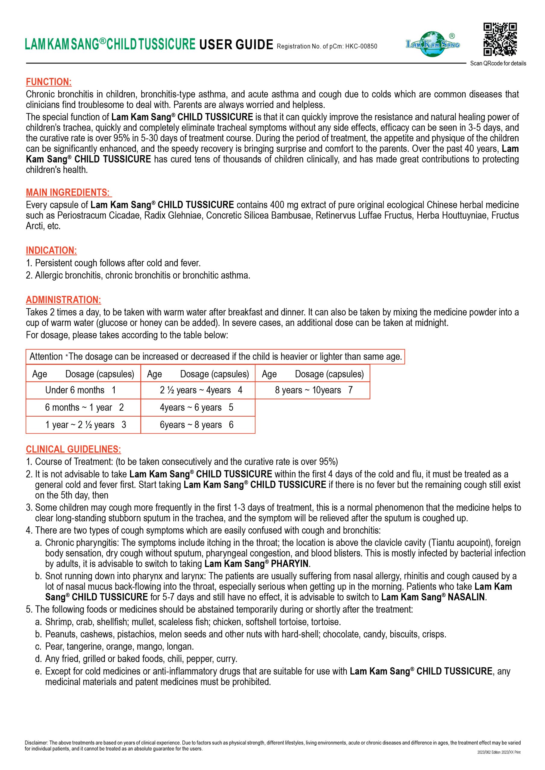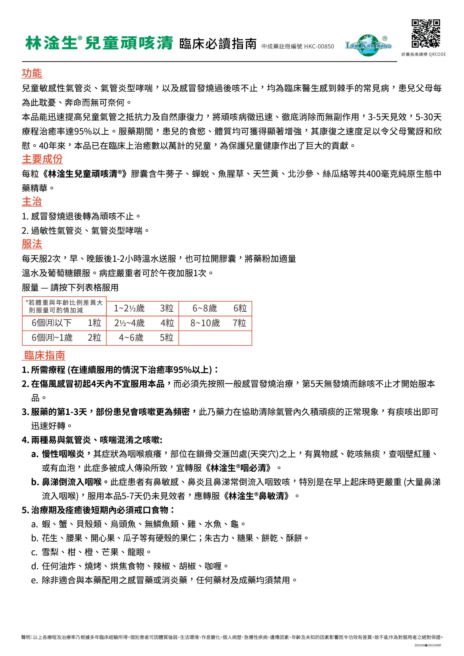 林淦生®兒童頑咳清臨床指南 中成藥註冊編號 HKC-00850