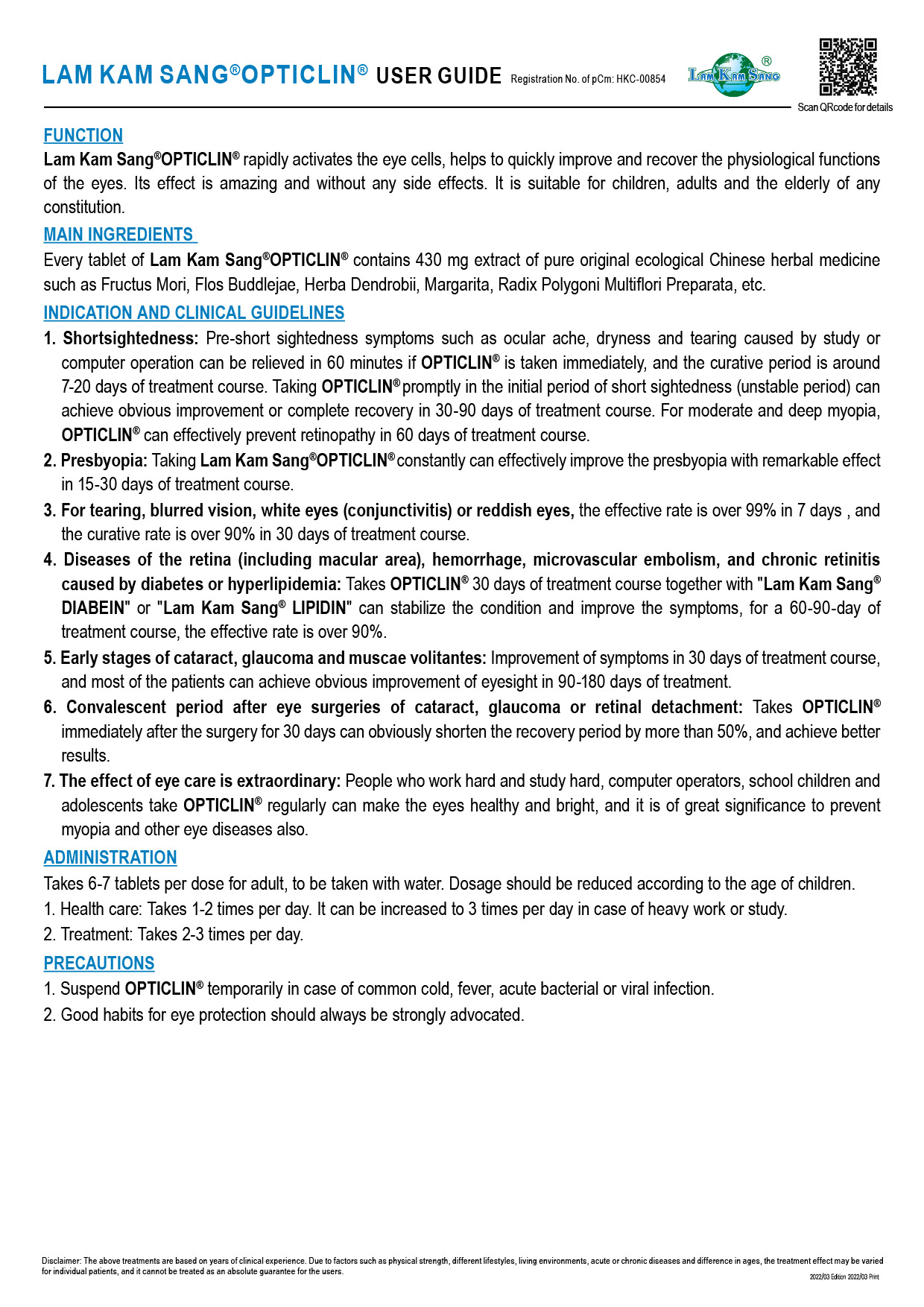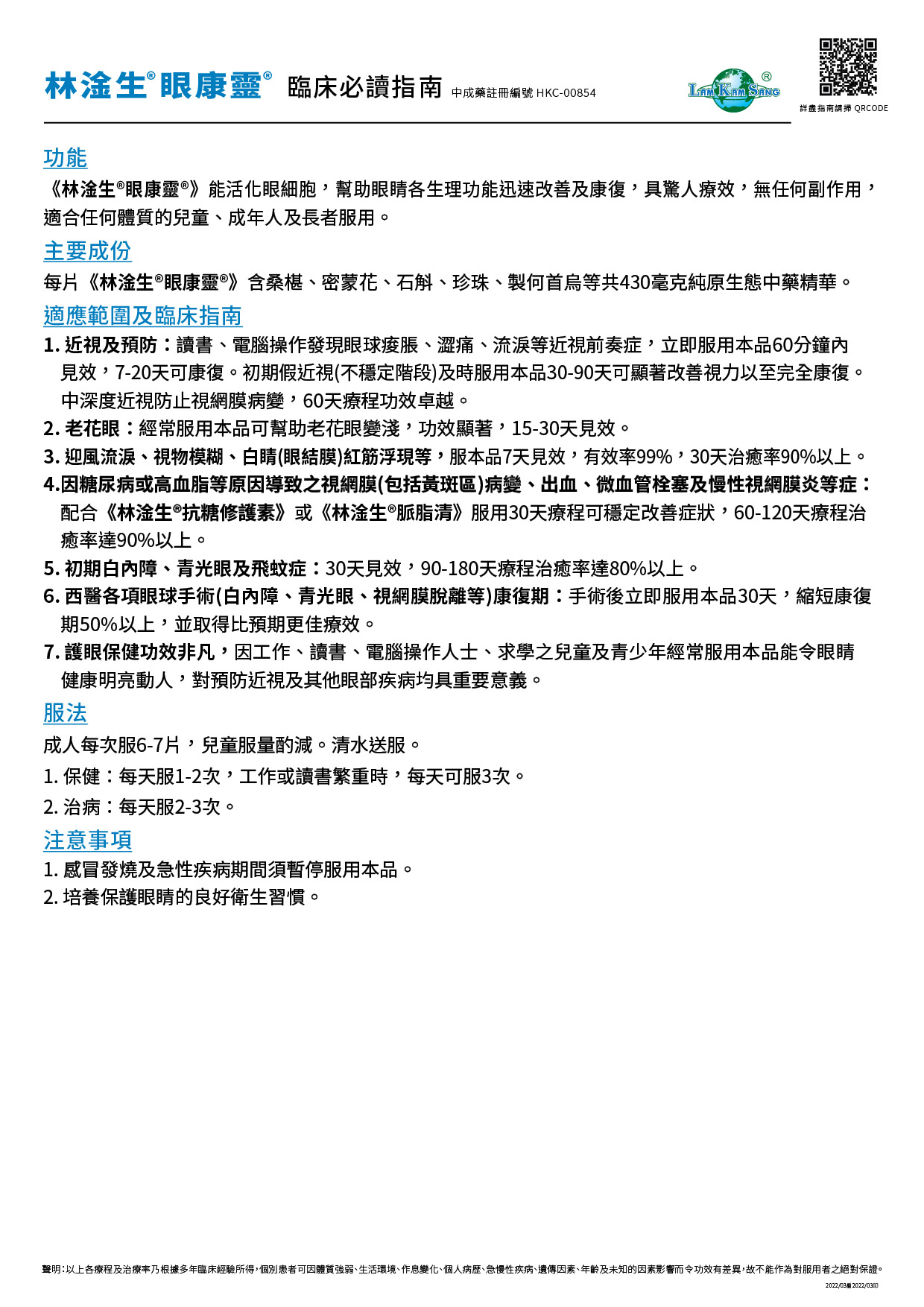 林淦生®眼康靈®臨床指南 中成藥註冊編號 HKC-00854