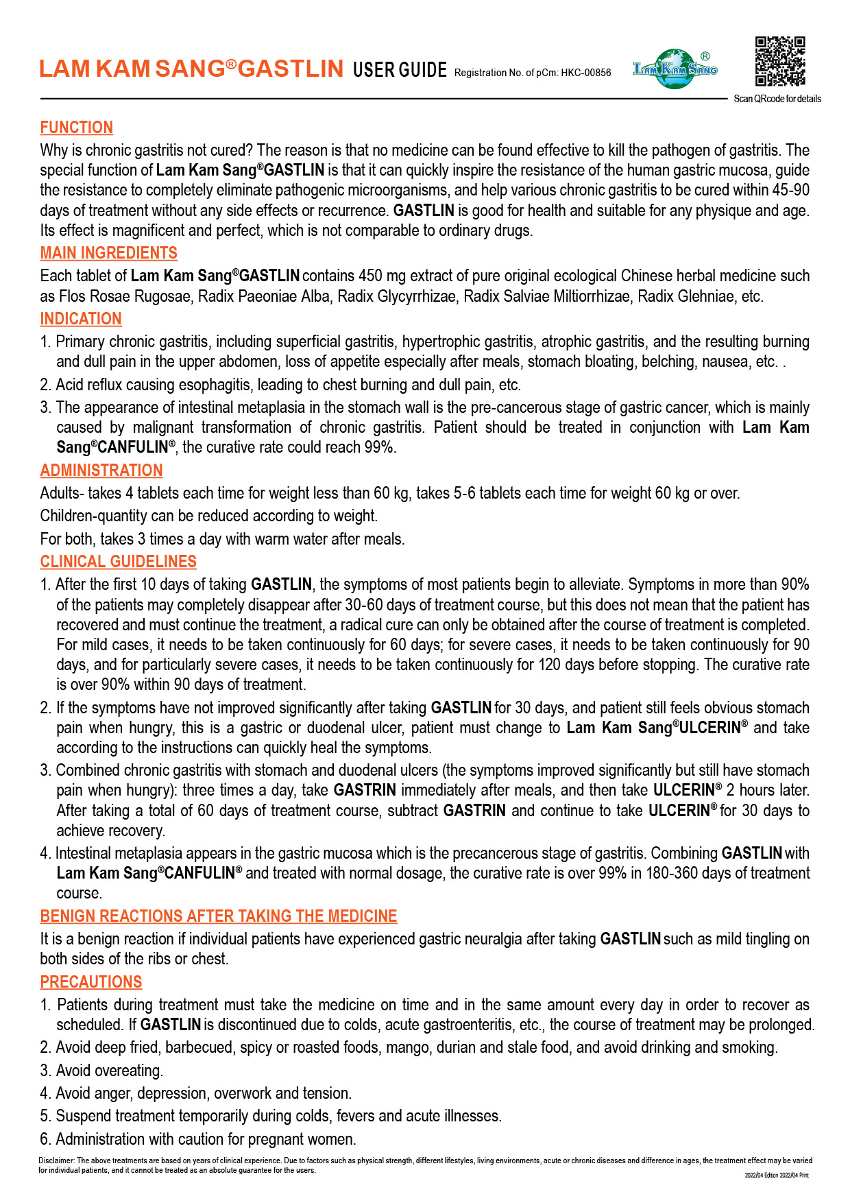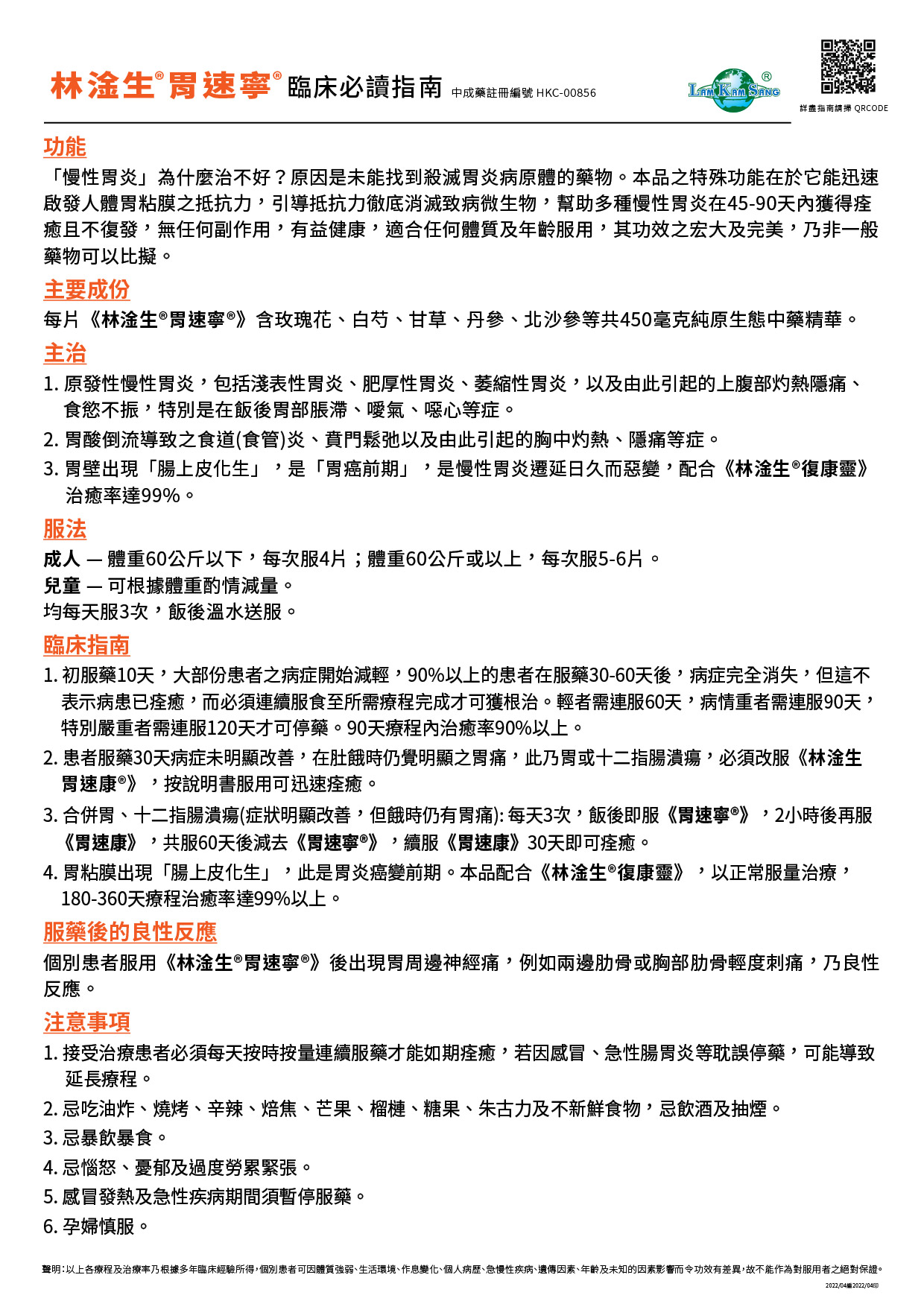林淦生®胃速寧®臨床指南 中成藥註冊編號 HKC-00856