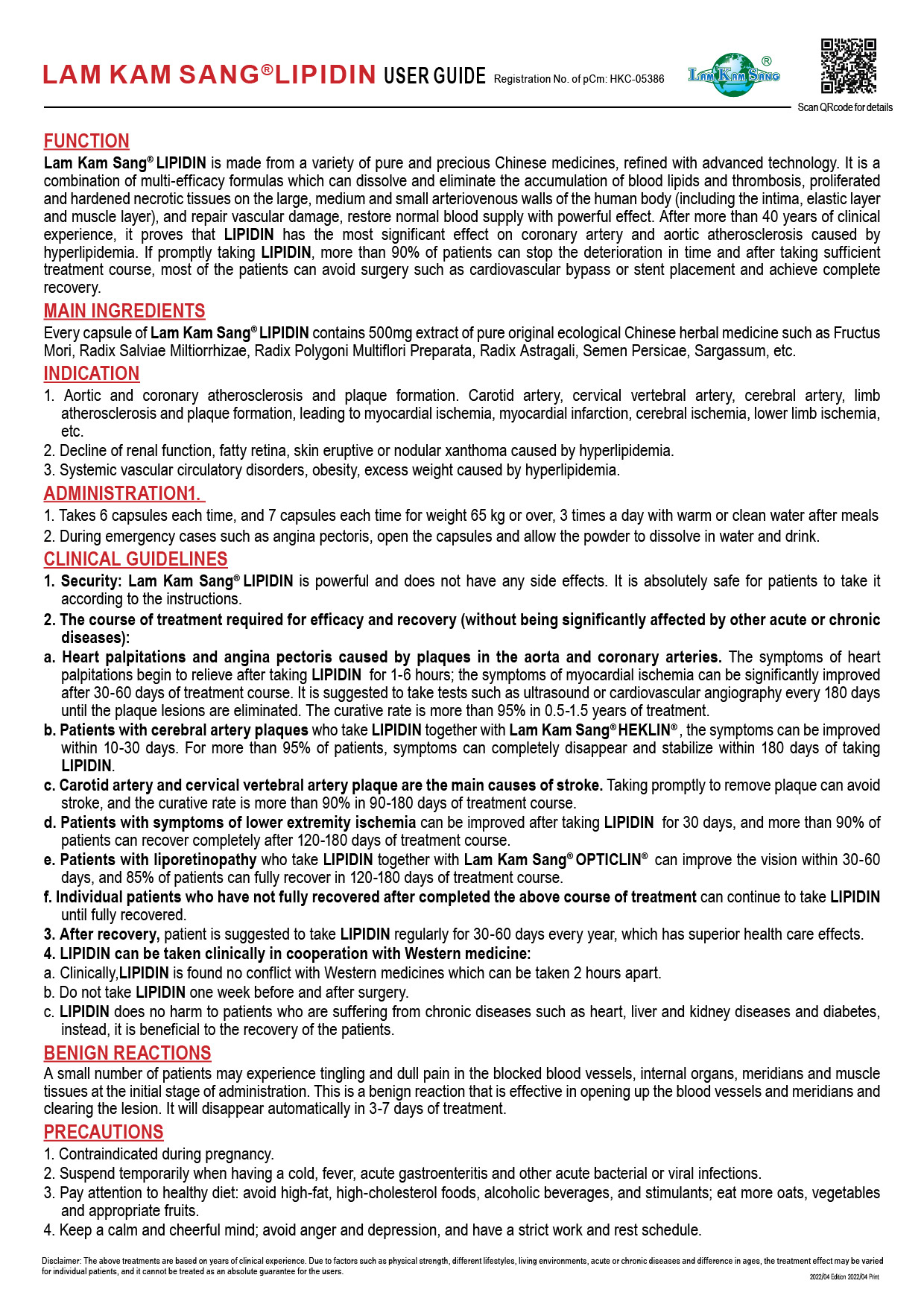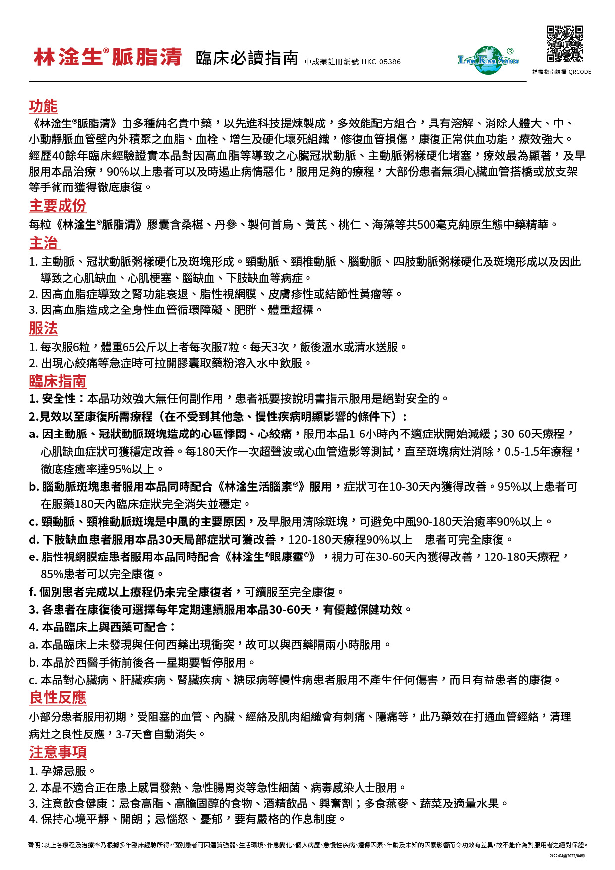 林淦生®脈脂清臨床指南 中成藥註冊編號 HKC-05386