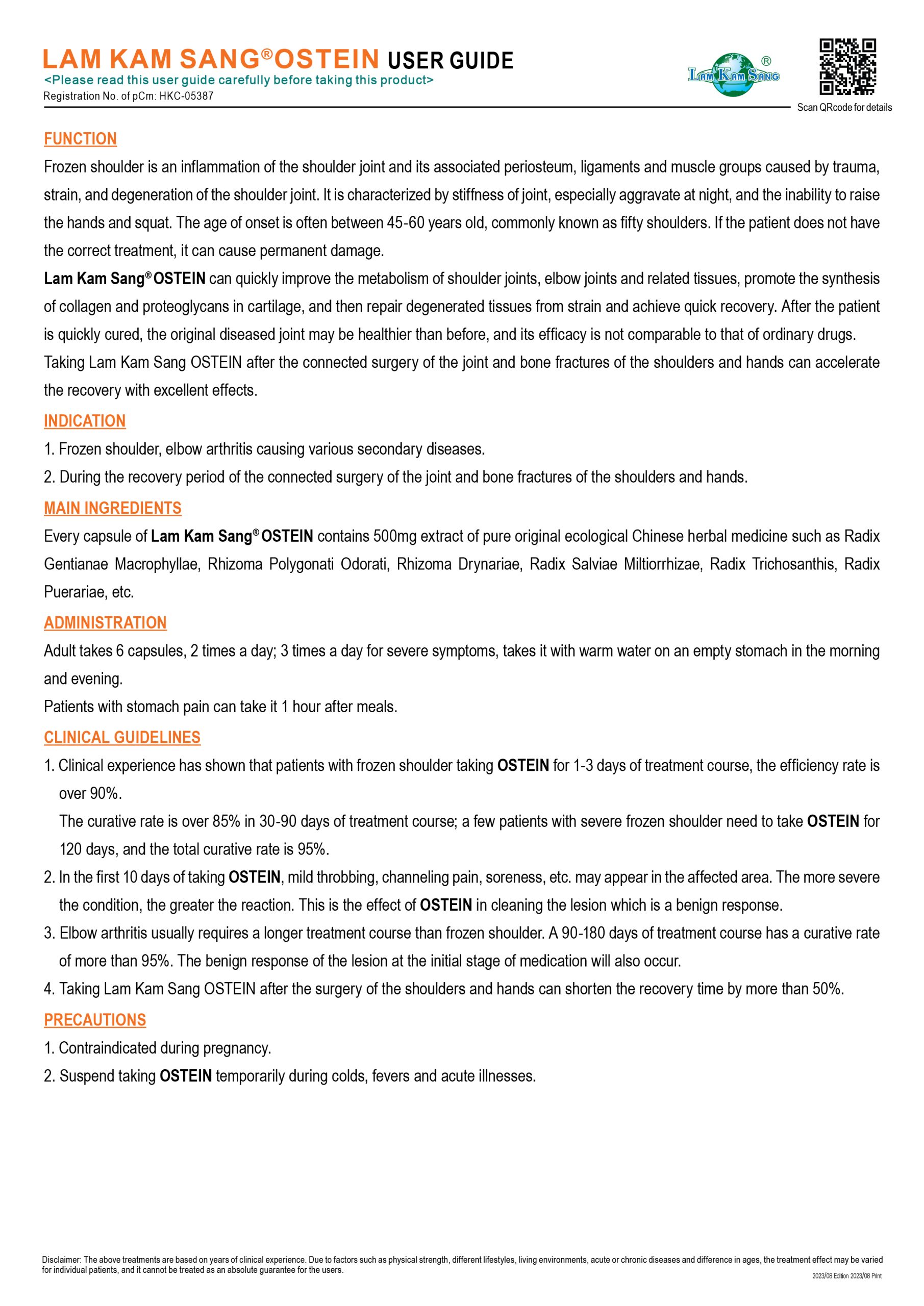 林淦生®肩周靈臨床指南 中成藥註冊編號 HKC-05387