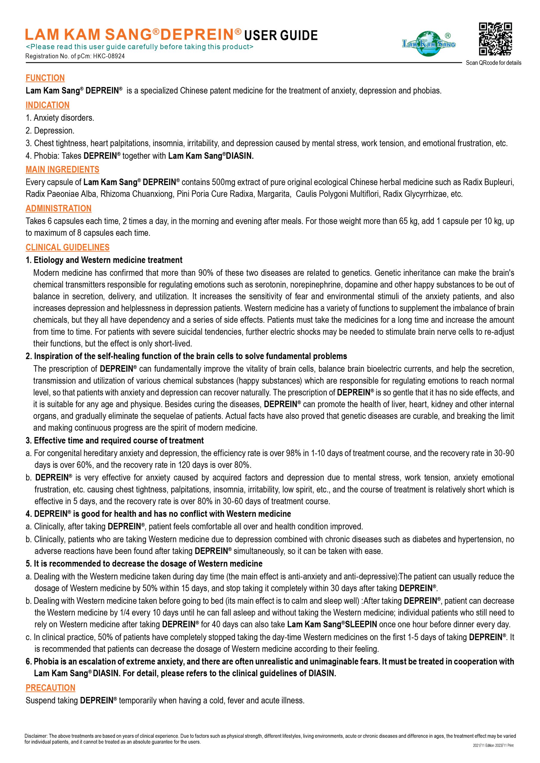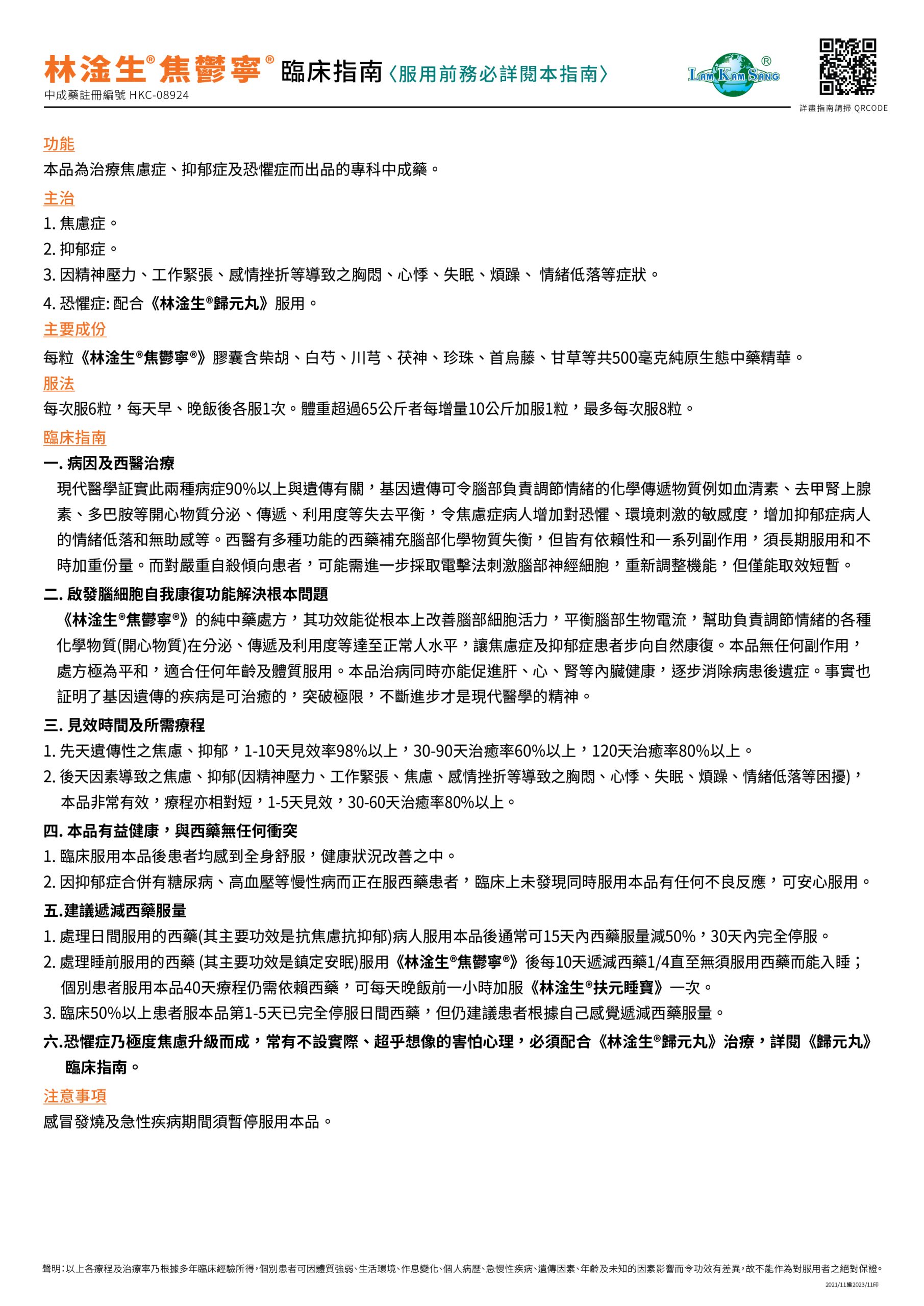 林淦生®焦鬱寧®臨床指南 中成藥註冊編號 HKC-08924