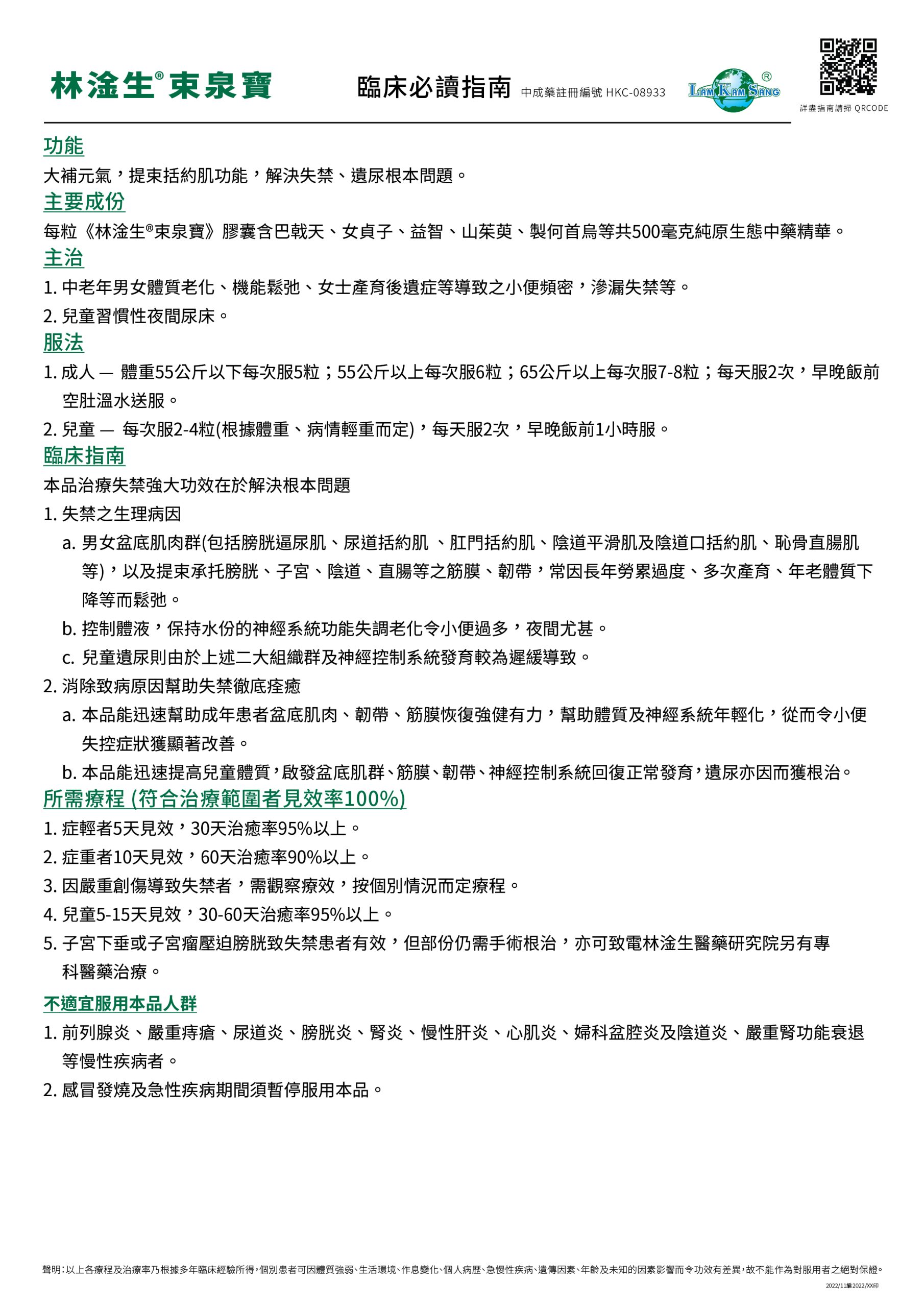 林淦生®束泉寶臨床指南 中成藥註冊編號HKC-08933