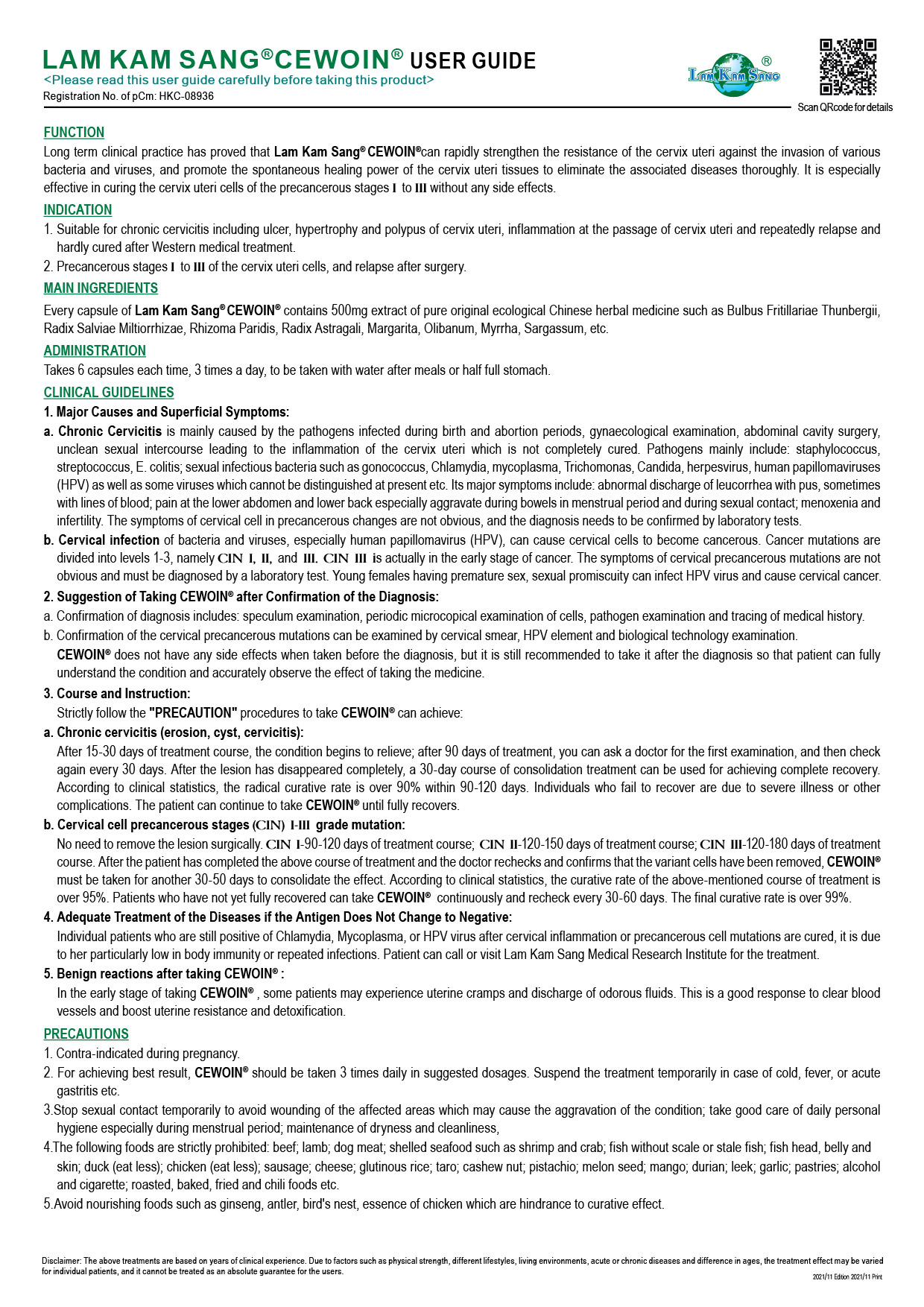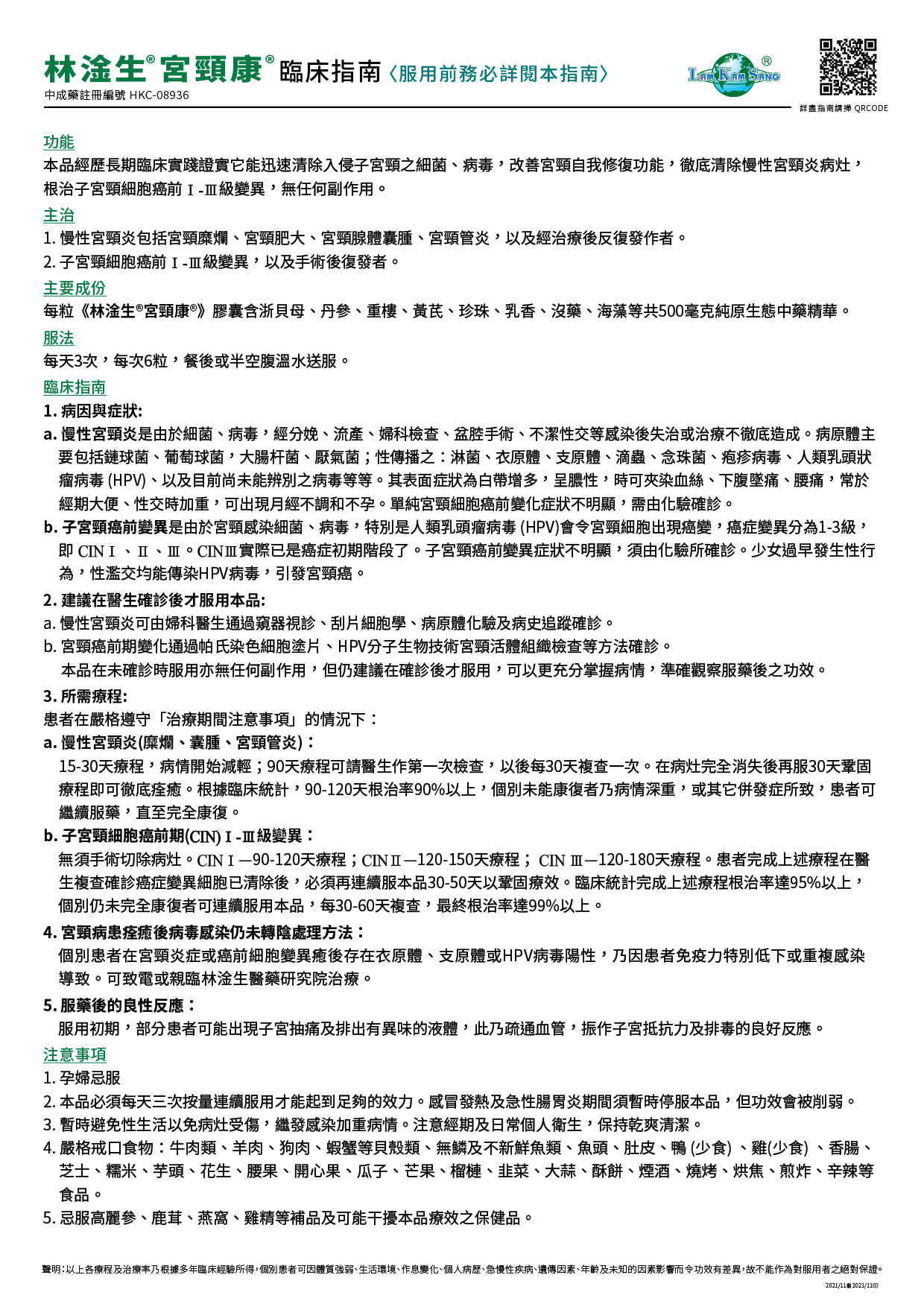 林淦生®宮頸康® 臨床指南 中成藥註冊編號 HKC-08936