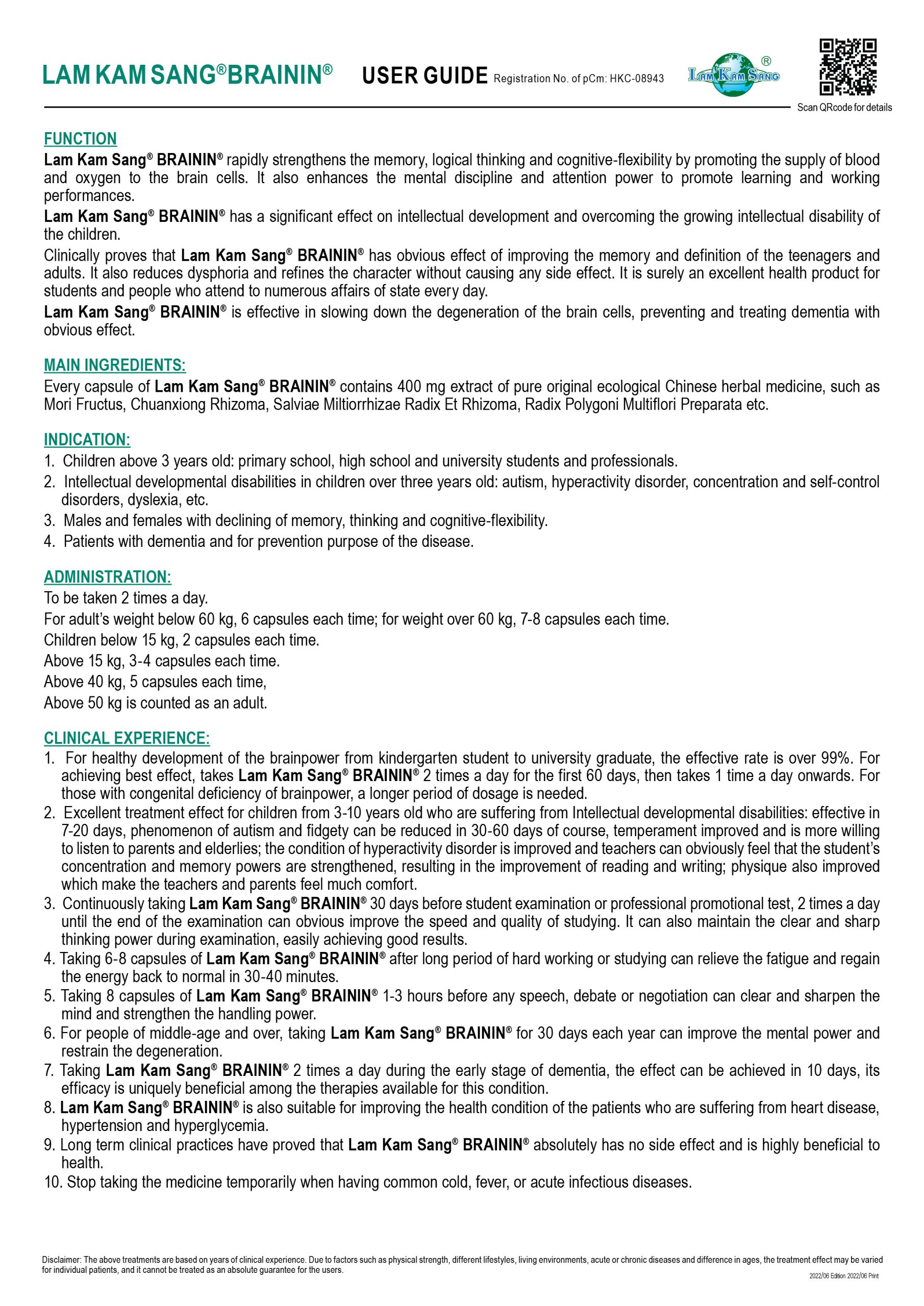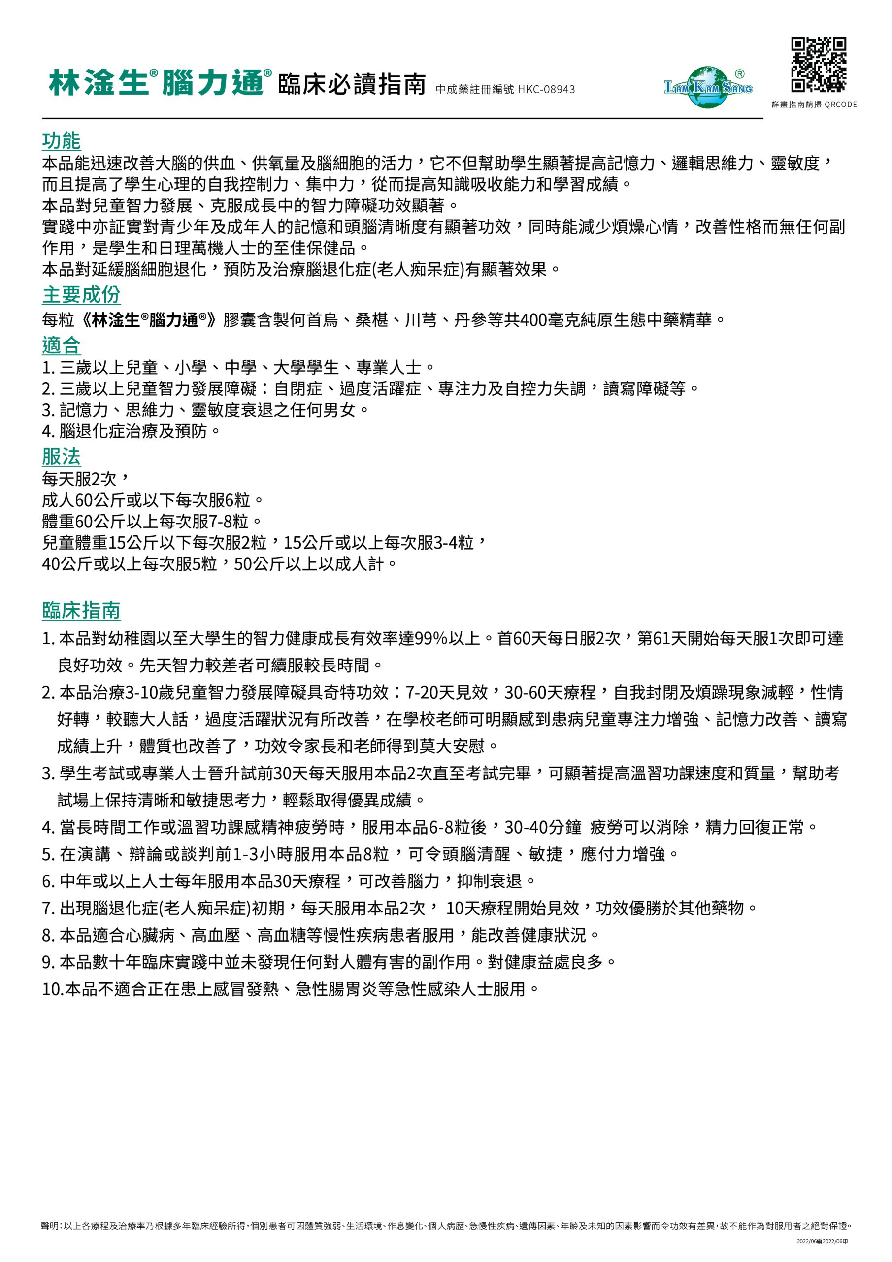 林淦生®腦力通®臨床指南 中成藥註冊編號 HKC-08943