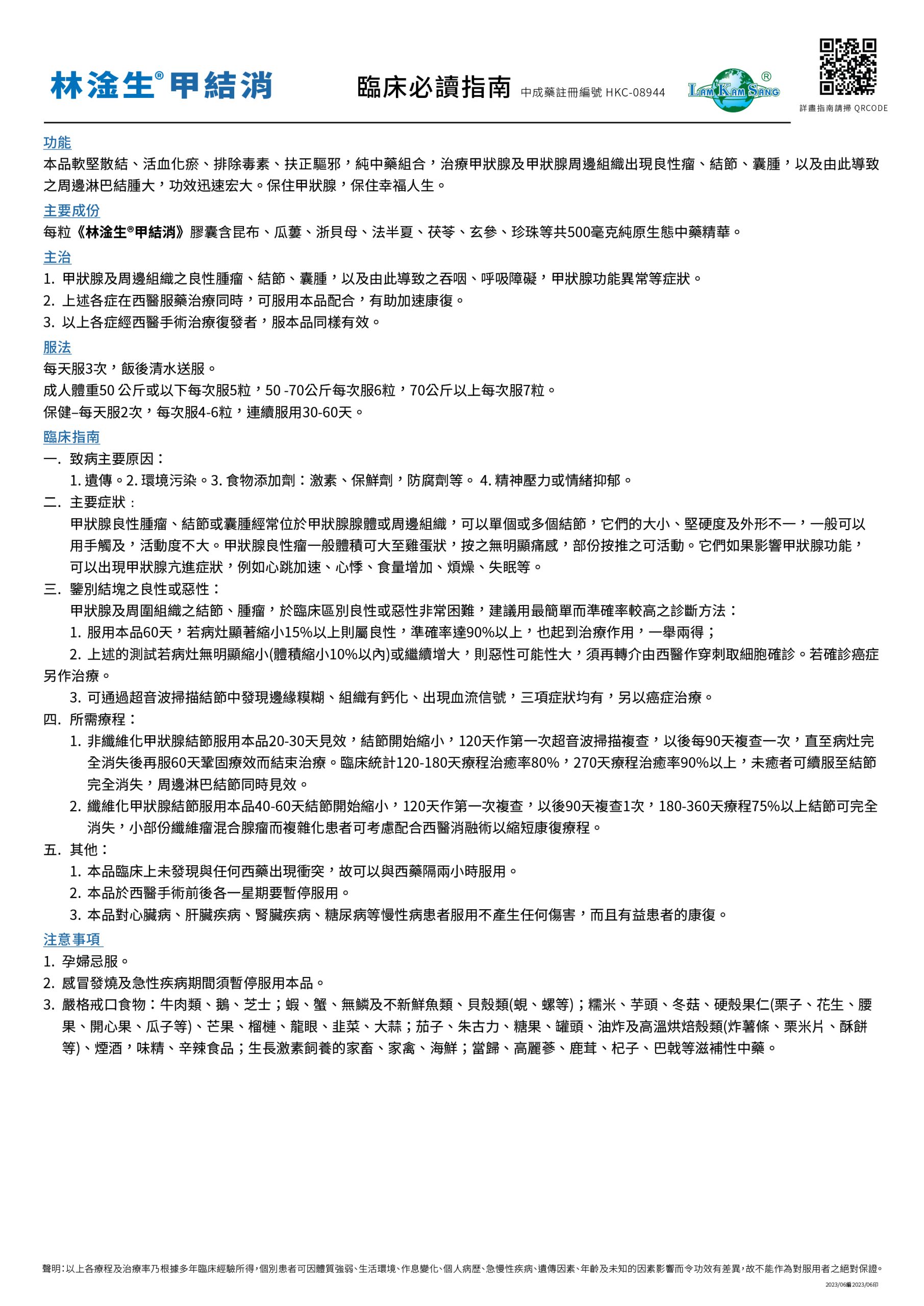 林淦生®甲結消臨床指南 中成藥註冊編號 HKC-08944